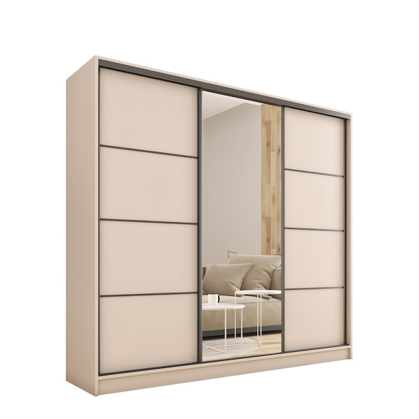 Nasza szafa z lustrem 280 cm EDGE to doskonałe rozwiązanie do przestronnych sypialni i garderób. Dzięki pojemnemu wnętrzu i nowoczesnemu designowi zapewnia wygodę przechowywania oraz elegancję, która odmieni każde wnętrze.