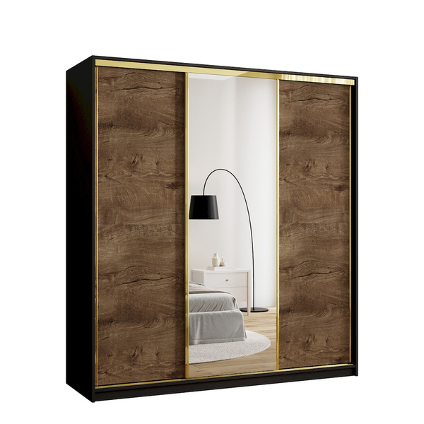 Szafa przesuwna ADRE jest propozycją o niebanalnym wyglądzie, dzięki któremu doskonale sprawdza się w klasycznych aranżacjach sypialni. Szafa w lewej komorze posiada drążek na wieszaki oraz dwie półki nad nim. Natomiast po prawej stronie swoje miejsce znalazły trzy półki oraz dwie szuflady pod nimi.