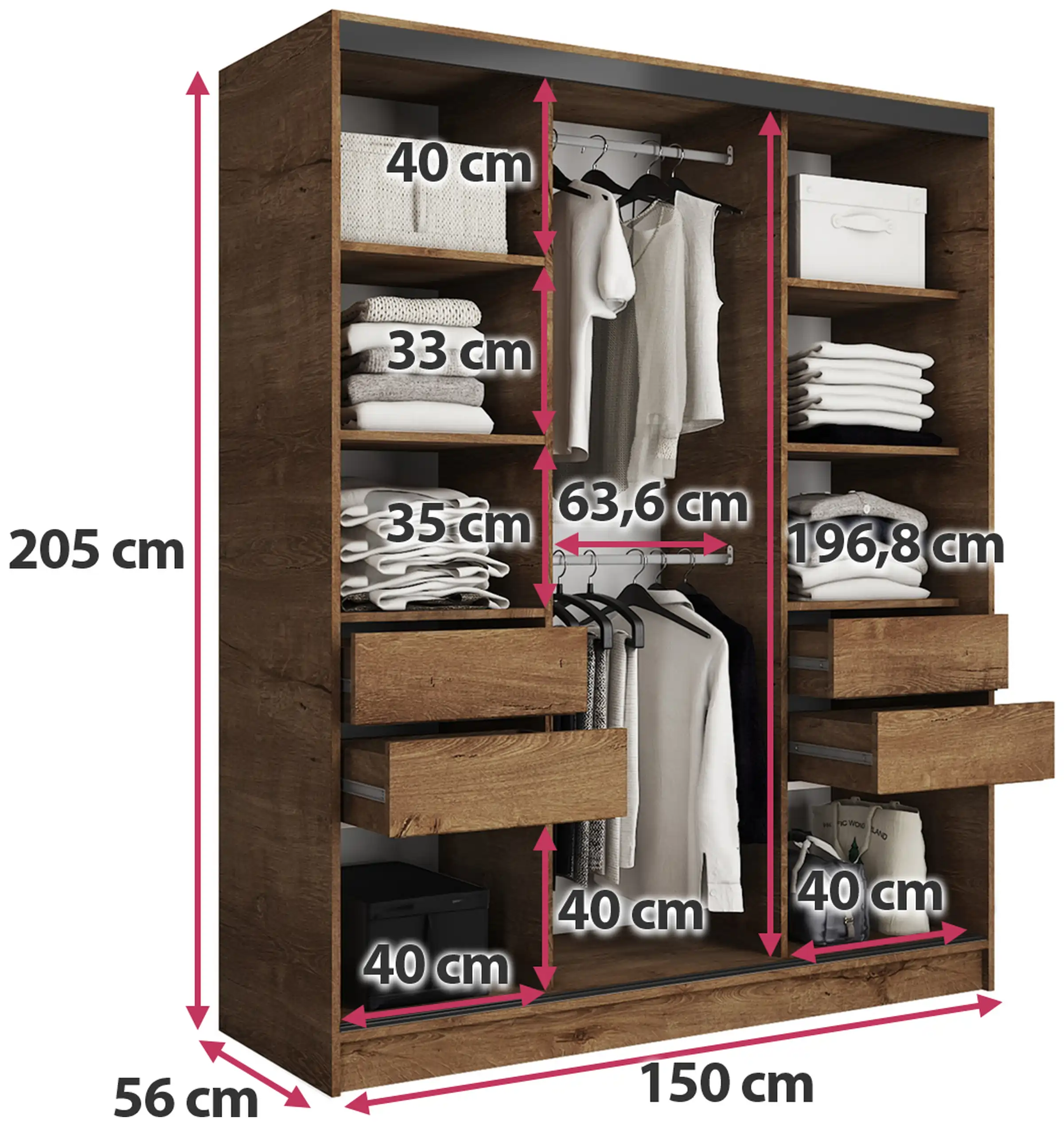 Nasza szafa przesuwna z lustrem to nie tylko mebel, ale i prawdziwa ozdoba Twojego wnętrza. Dzięki niej każdy dzień zaczynasz z uśmiechem, mając wszystko w zasięgu ręki. Wybierz jakość, wybierz funkcjonalność, wybierz nowoczesny design.