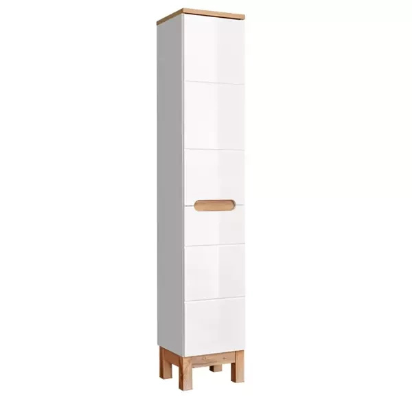 - Fronty wykonane z płyty MDF powlekane PCV wykończonej na wysoki połysk w kolorze Biały Kasai.