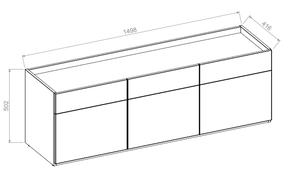 - Korpus oraz front szafki został wykonany z płyty laminowanej o grubości 16 mm w kolorze Silk Flou.