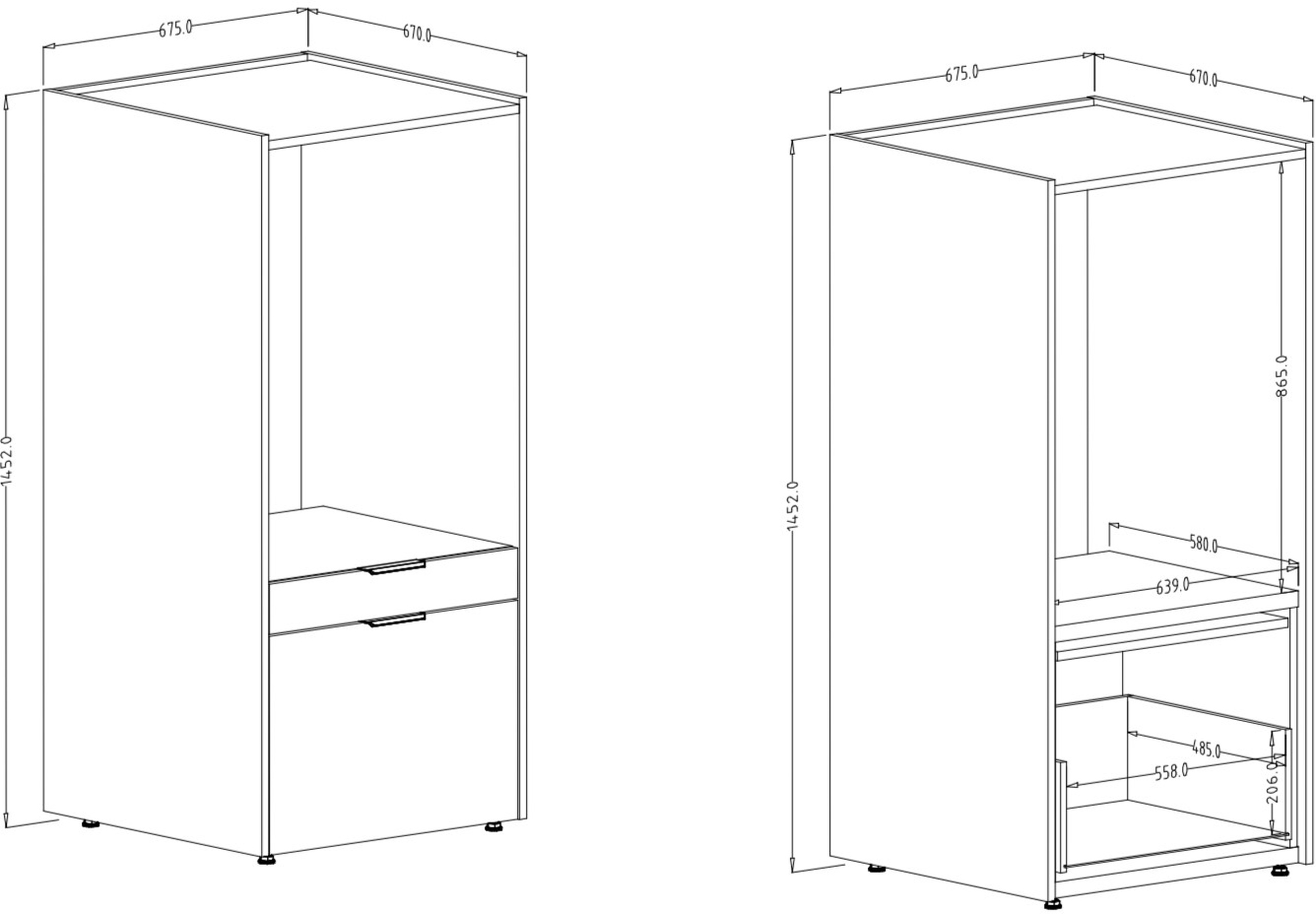 - Wymiary wnęki na pralkę: 63,9 × 58 × 86,5 cm