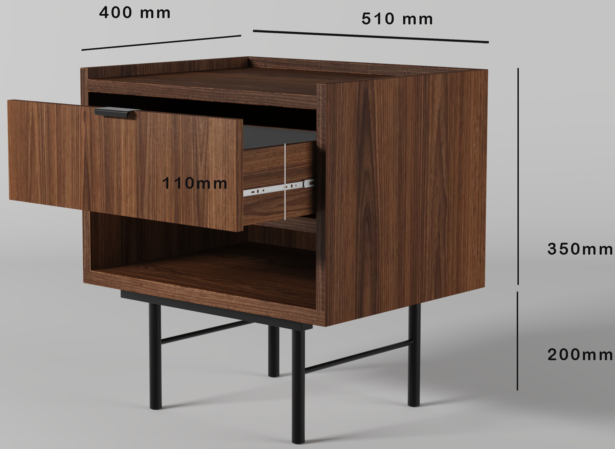 - 1 funkcjonalna szuflada – idealna na książkę, ładowarkę lub inne drobiazgi