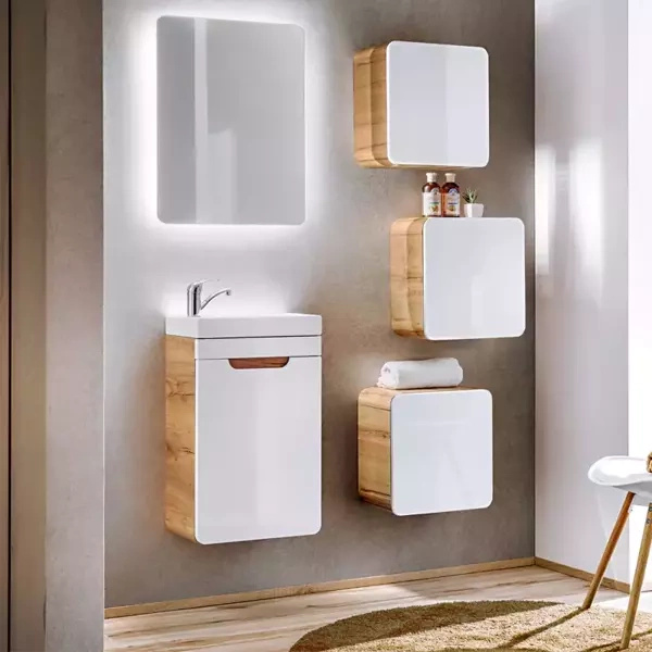 - Krawędzie szafki zostały starannie zabezpieczone przed trudami codziennego użytkowania okleiną ABS.