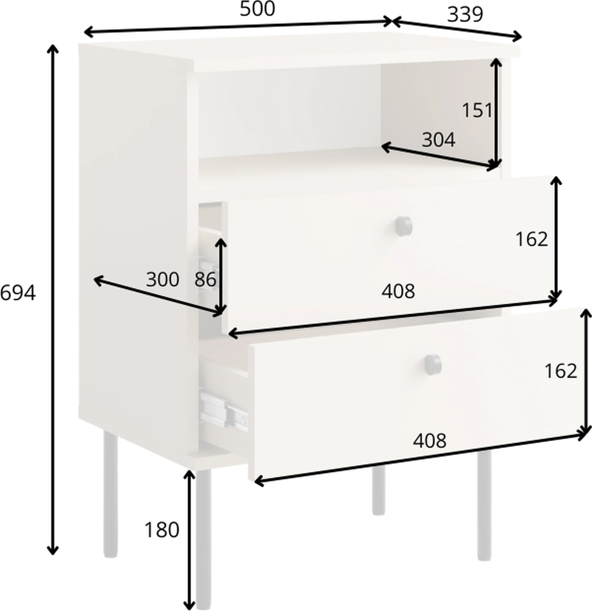 - 2 pojemne szuflady – dyskretne miejsce na książki, ładowarki i inne drobiazgi
