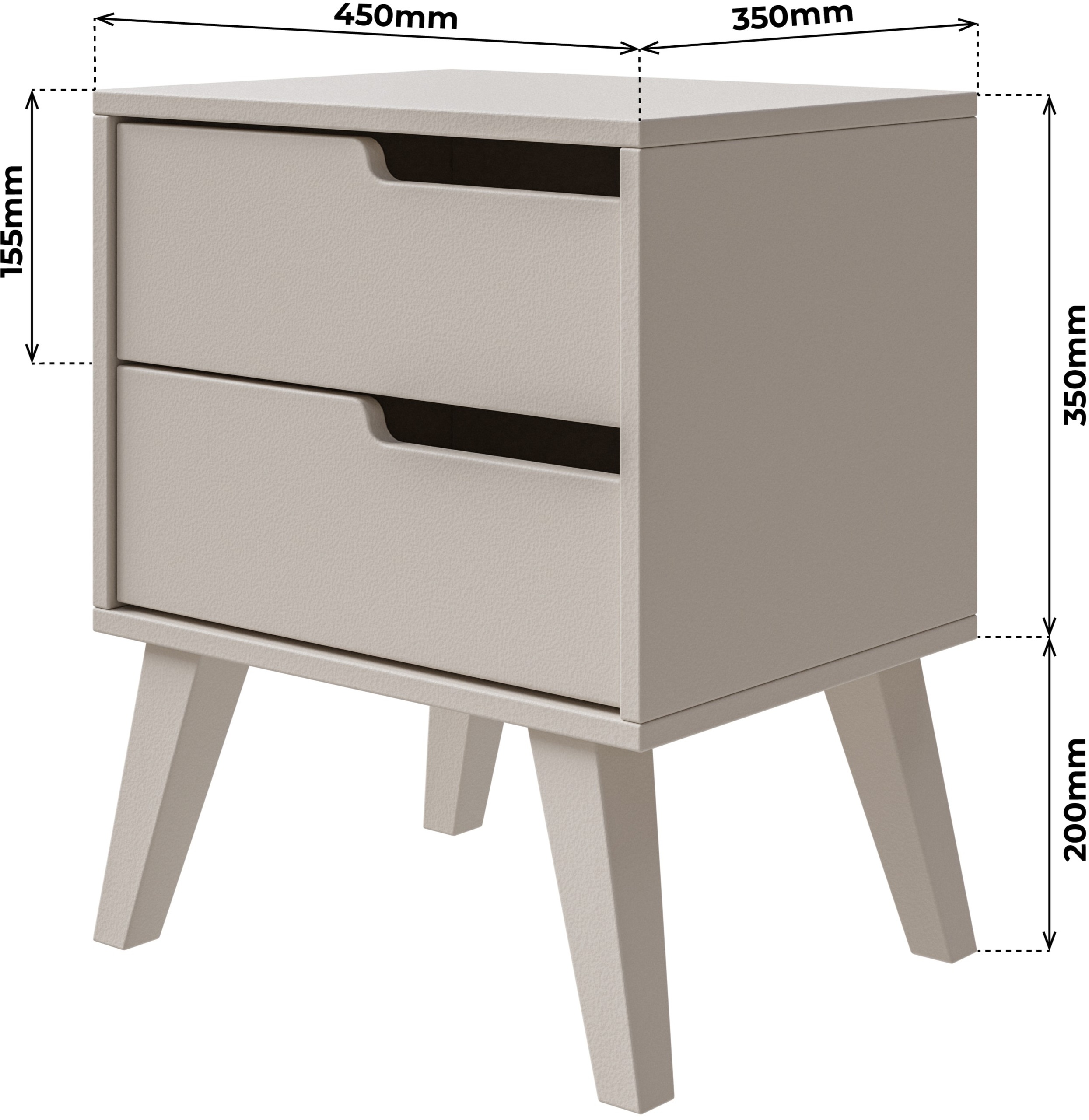 - Szafka nocna z dwiema szufladami – idealna na drobiazgi, kosmetyki lub elektronikę