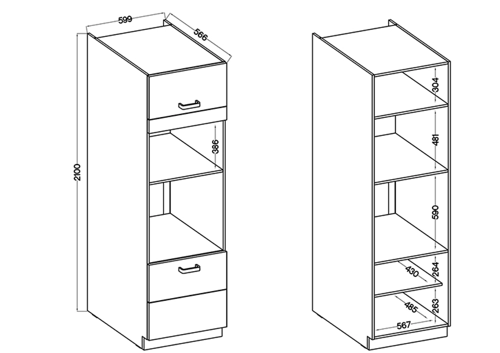 Wysoka szafka kuchenna o szerokości 60 cm pod zabudowę mikrofali i piekarnika VIKI.