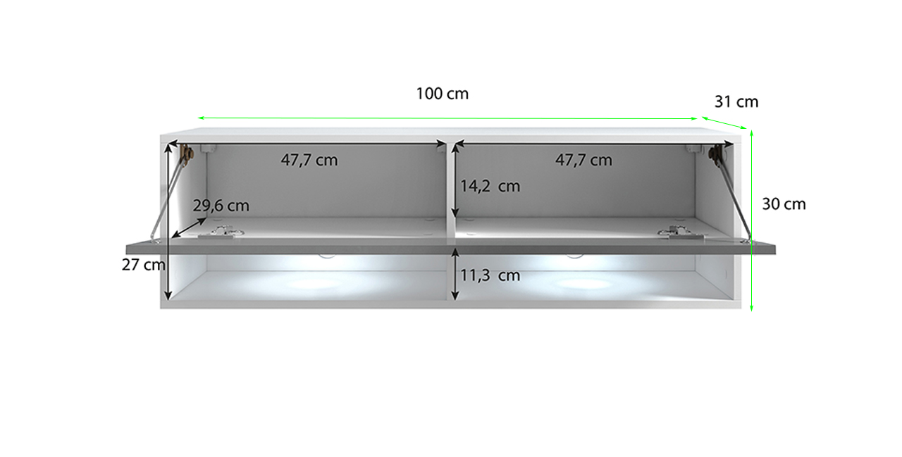 - Fronty wykonane z płyty laminowanej o grubości 15 mm oklejone obrzeżem ABS.