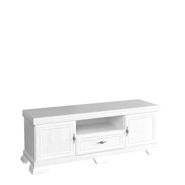 Szafka RTV TOKEN została zaprojektowana z myślą o maksymalnym wykorzystaniu przestrzeni. Posiada drzwi po lewej i prawej stronie, które skrywają pojemne komory na sprzęt elektroniczny, książki czy inne akcesoria. W środkowej części znajdziesz szufladę oraz dwie wnęki, idealne do przechowywania konsol do gier, dekoderów czy ozdobnych elementów. Dzięki temu, Twój salon zawsze będzie wyglądał schludnie i estetycznie.