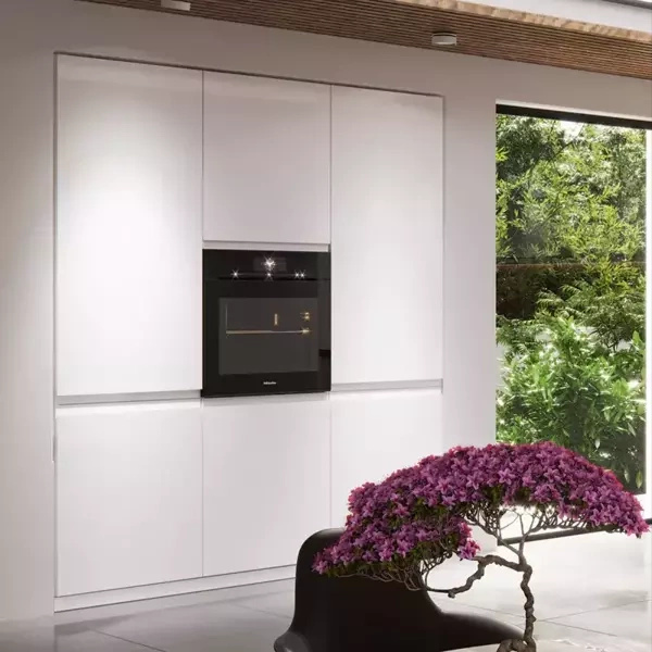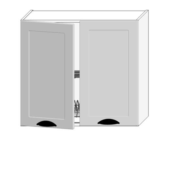 - Front szafki wykonano w kolorze biały bianco, natomiast korpus w kolorze bieli alpejskiej.
