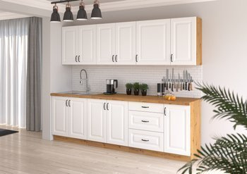 - Fronty szafki kuchennej wykonane są z płyty MDF grubości 18 mm lakierowanej na wysoki połysk.