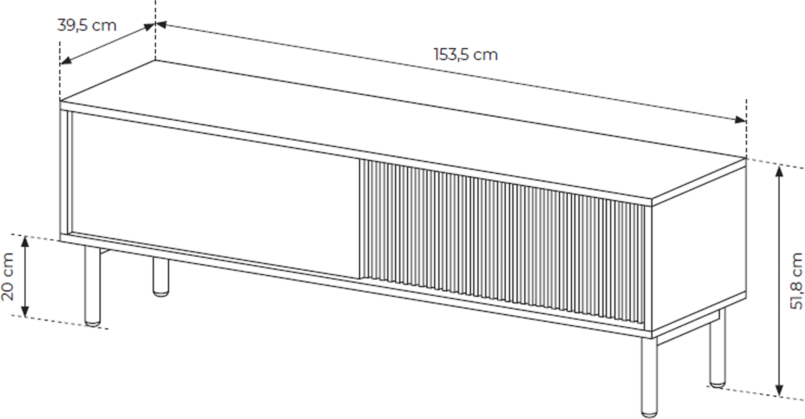 - Wymiary: szerokość 153,5 cm, wysokość 51,8 cm, głębokość 39,5 cm