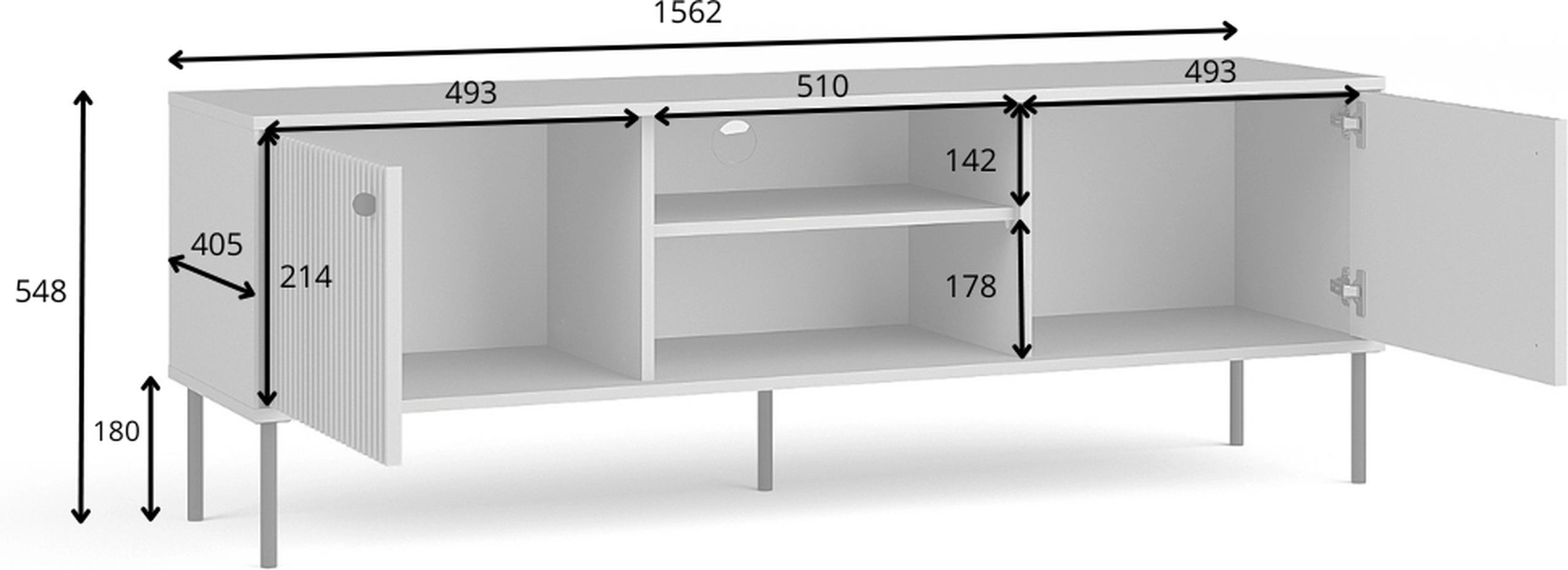 - Wymiary: szer. 156,2 cm / wys. 54,8 cm / gł. 40,5 cm