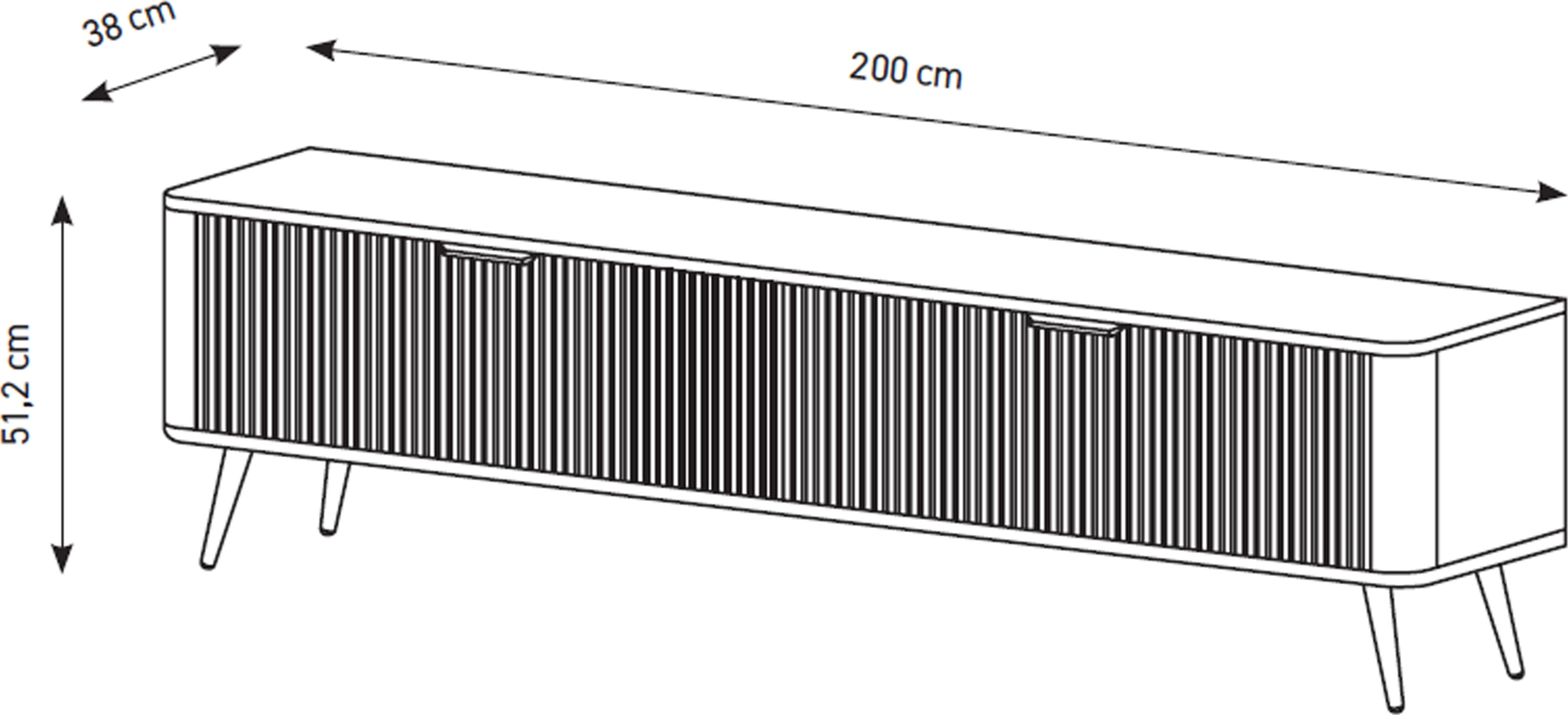 - Wymiary: szerokość 200 cm, głębokość 38 cm, wysokość 51 cm