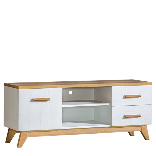 Szafka RTV TAVIER to propozycja o niebanalnym wyglądzie, dzięki któremu stanowi bardzo eleganckie rozwiązanie. Szafka została wyposażona w szufladę u dołu oraz dwie wnęki nad nią, w których możesz umieścić swój dekoder czy pamiątki.