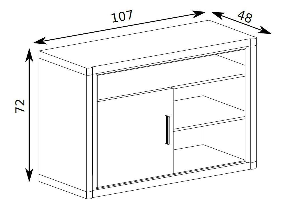 Szafka RTV DENEA jest nowocześnie wykonaną propozycją, która dzięki swojej stylistyce doskonale sprawdza się we współczesnych aranżacjach salonów. Szafka posiada drzwi, za którymi znajduje się półka oraz dwie otwarte półki, na których możesz umieścić swoje dekory oraz akcesoria.