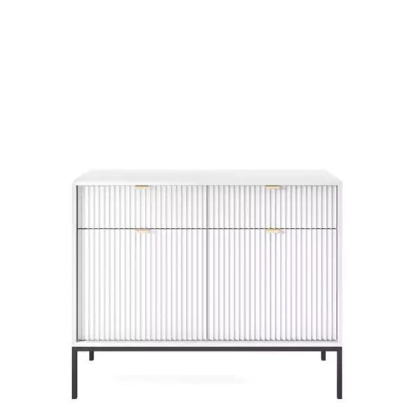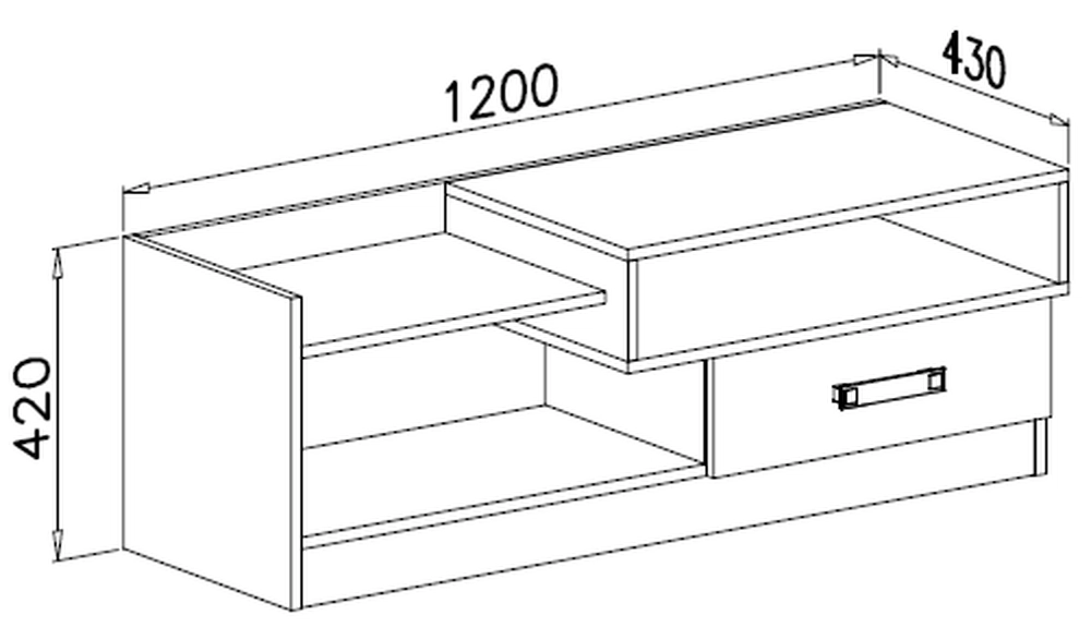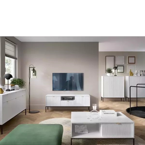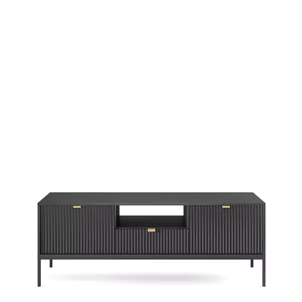 Szafka RTV z kolekcji nowoczesnych mebli systemowych OCON. Szafka RTV została wyposażona w szufladę oraz dwie wnęki. Szafka idealnie sprawdzi się jako podstawka pod telewizor. Dzięki trzem wariantom kolorystycznym dodatków i uchwytów możesz dopasować stylistykę szafki do własnego pomieszczenia.
