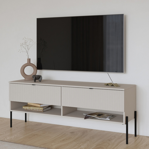 Szafa RTV ADRE została wykonana w klasycznym stylu, który czyni z niej bardzo elegancką propozycją. Posiada dwie szafki po bokach, w każdej z nich możesz umieścić swoje akcesoria, które zyskają odrobinę prywatności. Dodatkowo otwarta półka w centralnej części szafki jest świetnym miejscem na umieszczenie dekorów lub pamiątek, dzięki którym nadasz pomieszczeniu swoich własnych oraz niepowtarzalnych akcentów.