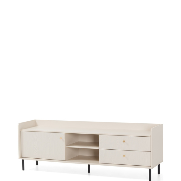 Nowoczesna szafka rtv z podwójną szufladą oraz półkami o szerokości 160 cm.