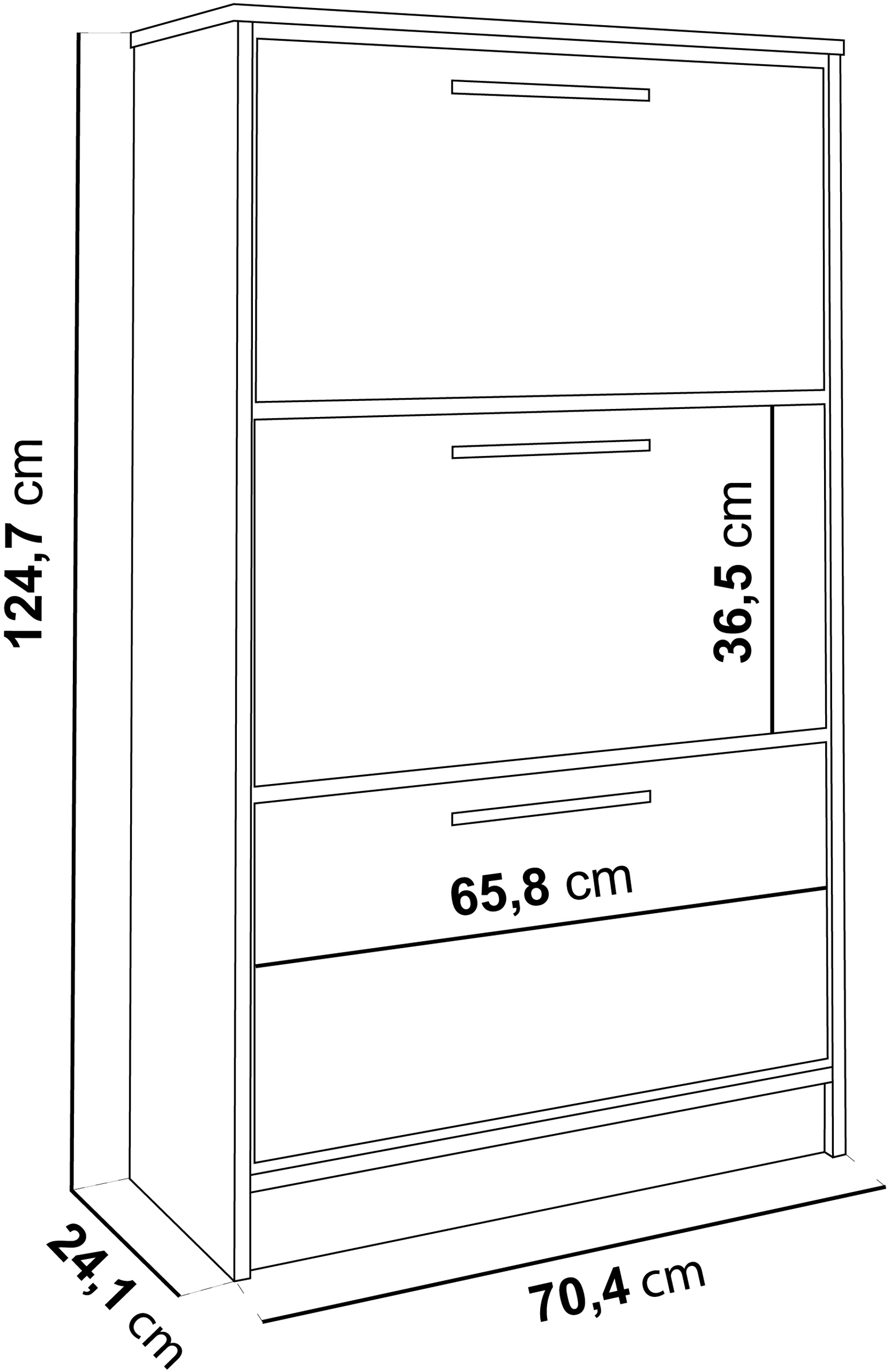 - 3 uchylne klapy z przegrodami – wygodne przechowywanie butów dla całej rodziny
