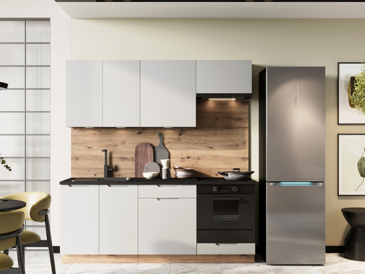 - Zastosowane w szafce zawiasy z cichym domykiem gwarantują delikatne zamykanie i otwieranie frontów.