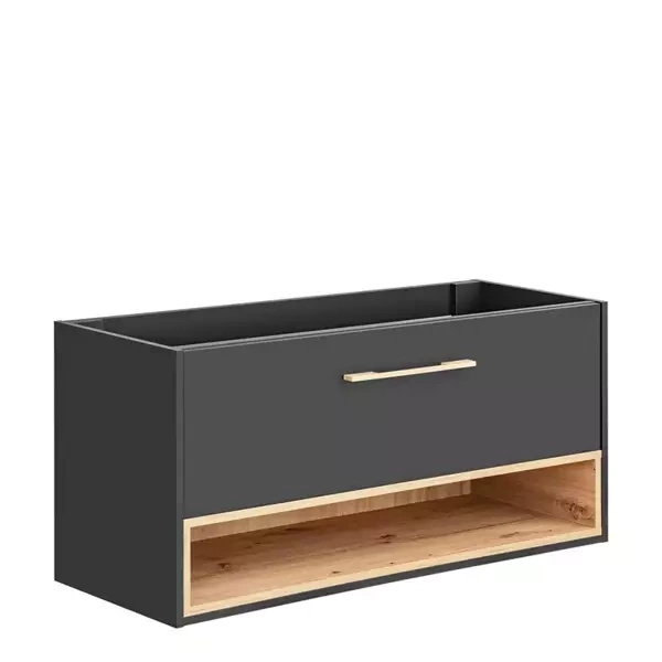 - Korpusy wykonane zostały z płyty laminowanej w kolorze Szarym 'Cosmos'.