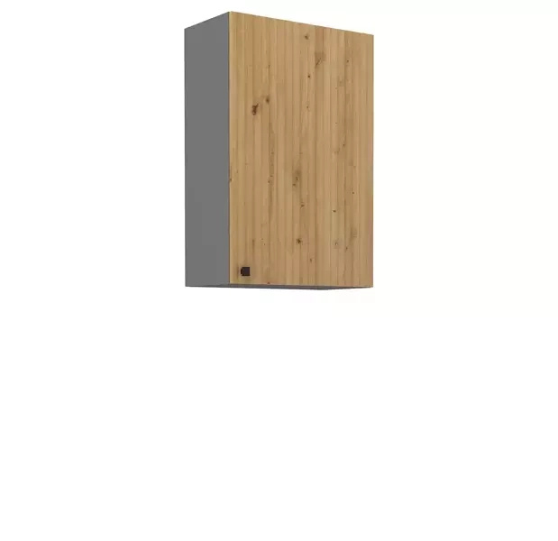 Stojąca szafka kuchenna z koszem cargo. Szafka ma tylko jeden front, który posiada system cichego domykania, co gwarantuje delikatne zamykanie i otwieranie drzwi. Szafka opiera się na cokole w kolorze korpusu.