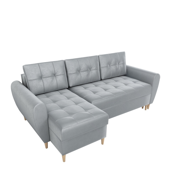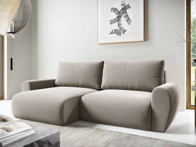 Narożnik z funkcją spania, umożliwia łatwe dopasowanie do większości przestrzeni mieszkalnych, dzięki wyjątkowemu i minimalistycznemu designowi. Siedzisko oparte na sprężynie falistej i piance PUR zapewnia odpowiednią elastyczność i wytrzymałość, co zwiększa komfort użytkowania. Wygodę podnoszą także dwie duże, profilowane poduchy dbające o odpowiednie oparcie oraz dwie mniejsze, które można dowolnie aranżować.
