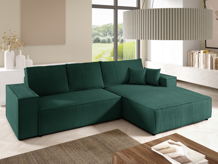 • Narożnik posiada tapicerowane plecy w tej samej tkaninie co reszta mebla, oznacza to, że można ustawić mebel nawet pośrodku salonu.