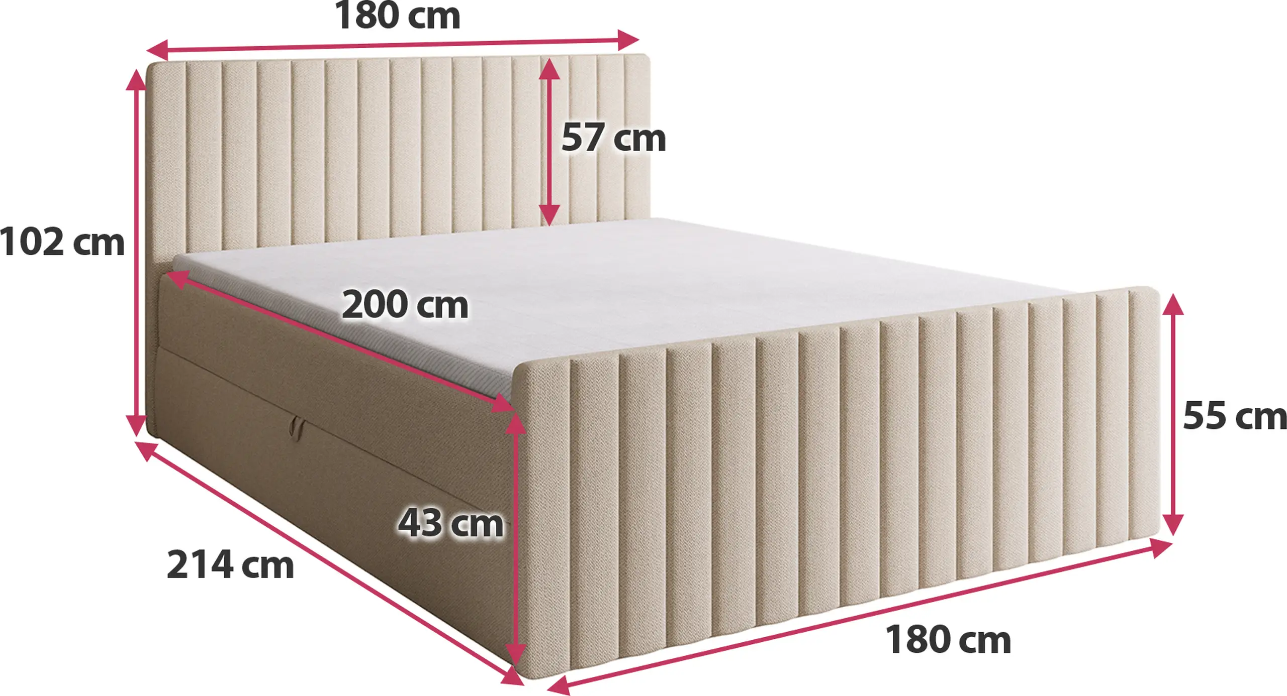 - Powierzchnia spania: 180 x 200 cm