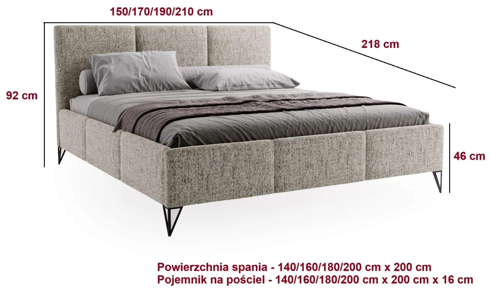 - Wysoka skrzynia 46 cm – komfortowe wstawanie i elegancki wygląd