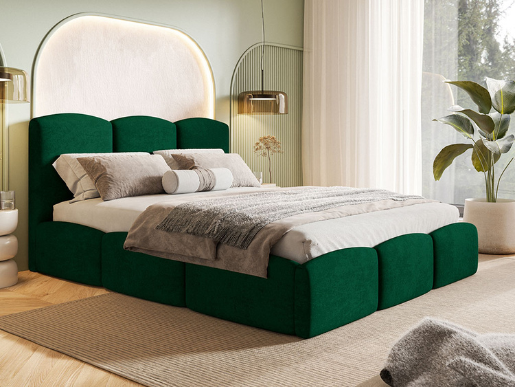 Tapicerowany zagłówek łóżka 160x200 cm wyróżnia się eleganckimi pikowaniami, które dodają wnętrzu luksusowego charakteru. To doskonałe podparcie podczas relaksu z książką lub oglądania ulubionych seriali. Precyzyjne wykończenie i wysokiej jakości materiały sprawiają, że łóżko zachwyca wyglądem i trwałością.