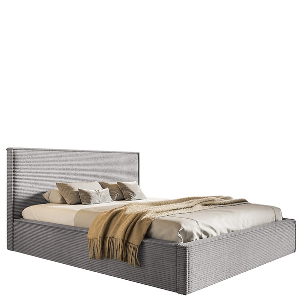 Szare tapicerowane łóżko 160x200 cm dwuosobowe z pojemnikiem SALERNO