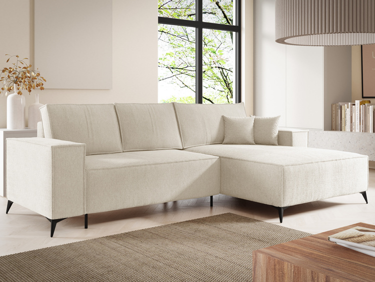 Rozkładana powierzchnia spania sprawia, że narożnik jest idealnym rozwiązaniem do mniejszych mieszkań lub salonów, w których liczy się każdy metr przestrzeni. Wbudowany pojemnik na pościel pozwoli Ci szybko schować koce i poduszki, zachowując porządek bez wysiłku.