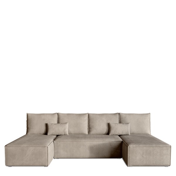 Pod siedziskiem narożnika znajduje się pojemnik na pościel, który umożliwia łatwe i dyskretne przechowywanie pościeli lub innych przedmiotów. Jest to idealne rozwiązanie dla tych, którzy cenią sobie porządek i efektywne wykorzystanie przestrzeni w swoim salonie.