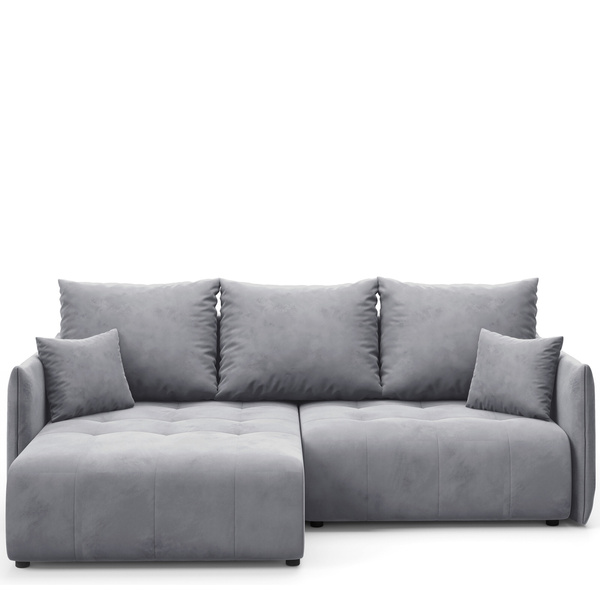 • Uniwersalna konstrukcja umożliwia montaż narożnika zarówno w wersji lewo-, jak i prawostronnej. Stronę, na której umieszczona jest otomana, można wybrać podczas składania mebla, co daje elastyczność dopasowania do pomieszczenia.