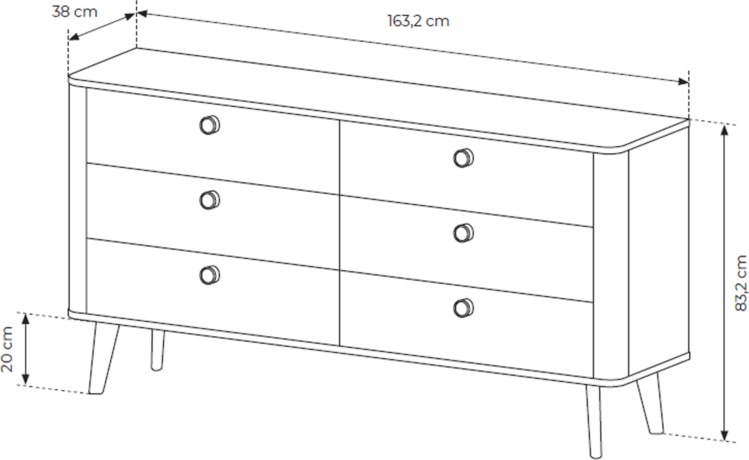 - Wymiary: szerokość 163,2 cm, wysokość 83,2 cm, głębokość 38 cm
