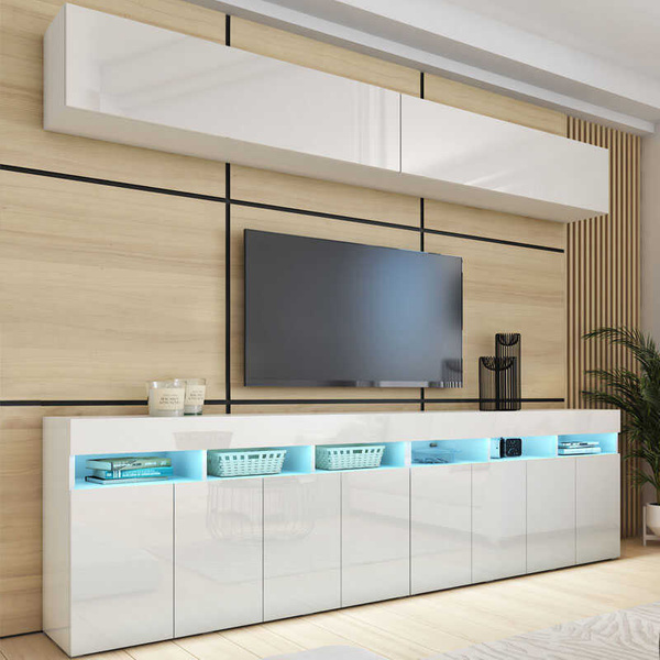 Oświetlenie LED - Meble posiadają możliwość doposażenia w dedykowane oświetlenie LED, które znajduje się w zakładce "Kup razem" pod galerią zdjęć. Aby wyposażyć meble w dedykowane oświetlenie LED, prosimy dodać do koszyka zestaw dwóch lampek.