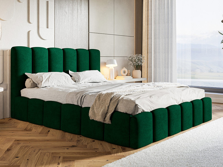 • Łóżko tapicerowane PARISIO o powierzchni spania 180x200 cm obite zostało wysokiej jakości tkaniną sztruksową Poso. Łóżko posiada pojemnik na pościel otwierany za pomocą podnośników, które przejmują na siebie ciężar i odciążają otwieranie.