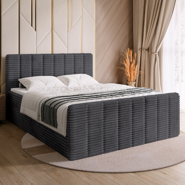 - Wysoki, tapicerowany zagłówek z przeszyciami jest idealnym wsparciem podczas wieczornego odpoczynku, pozwalając na komfortowe oparcie się podczas czytania książki lub oglądania ulubionych programów.