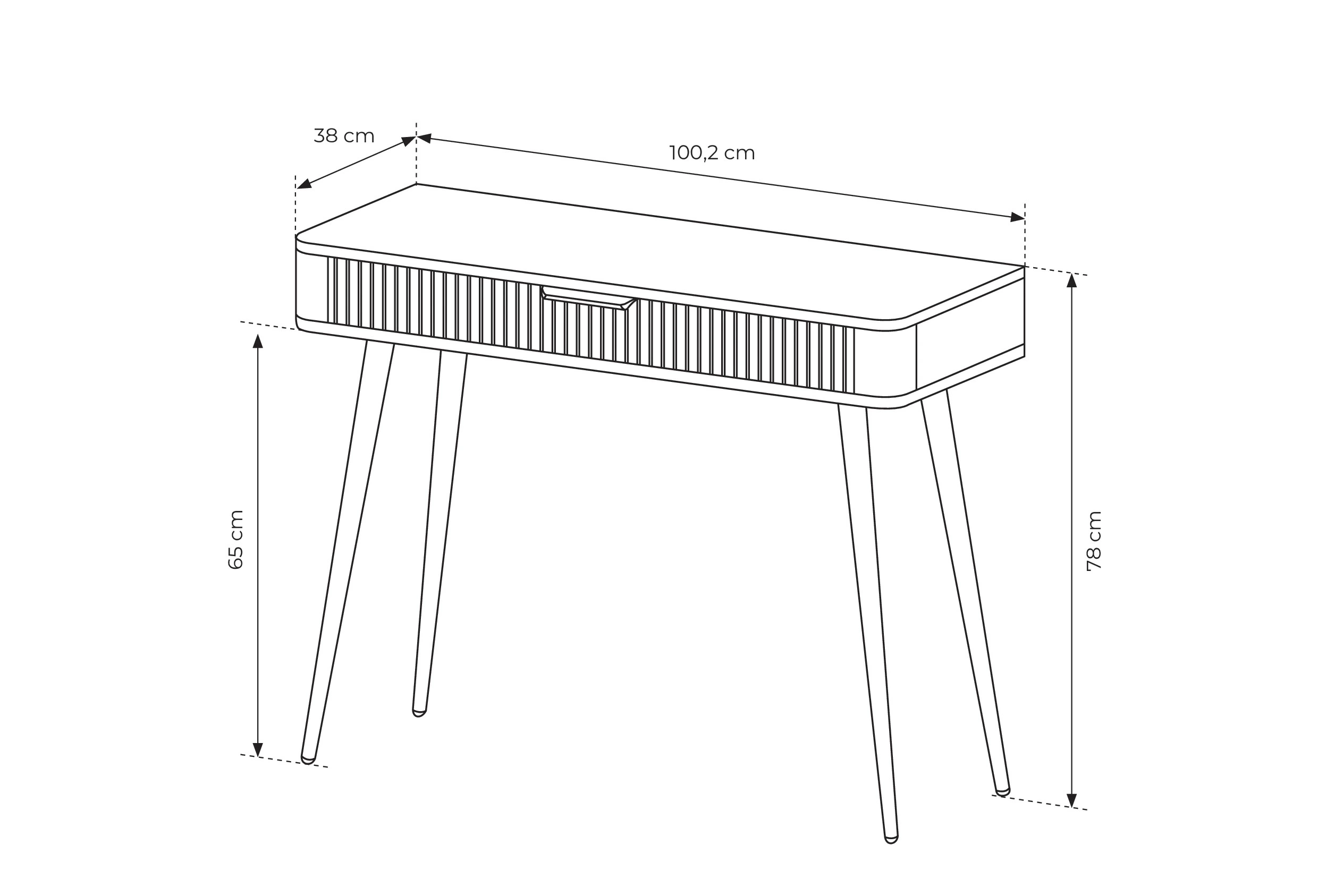 Konsolka LEONTE doskonale sprawdzi się jako toaletka, stolik pomocniczy lub konsola w przedpokoju – subtelna, a zarazem wyrazista ozdoba wnętrza.