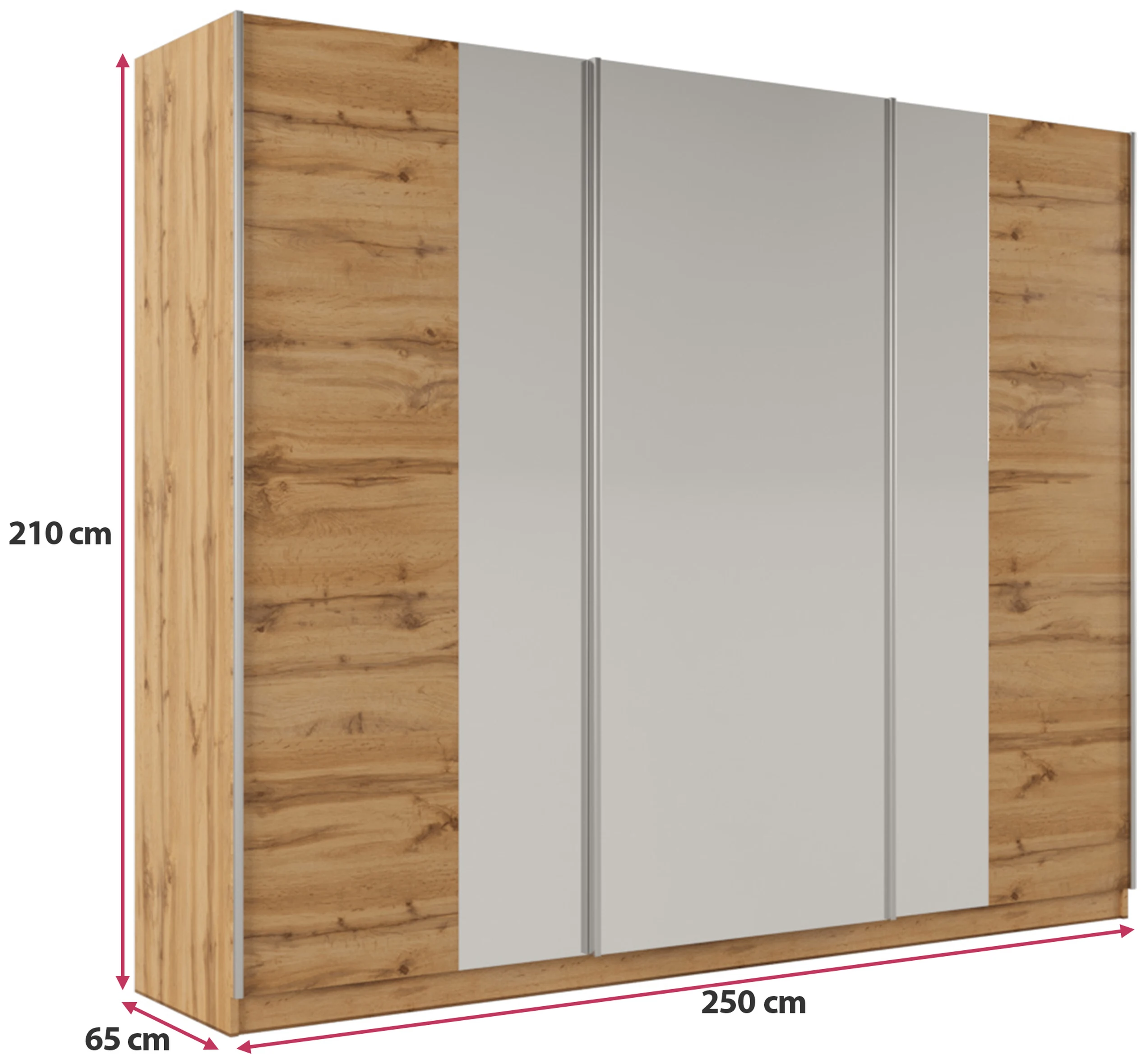 Trzydrzwiowa szafa przesuwna z lustrem 250 cm PARDO dąb wotan