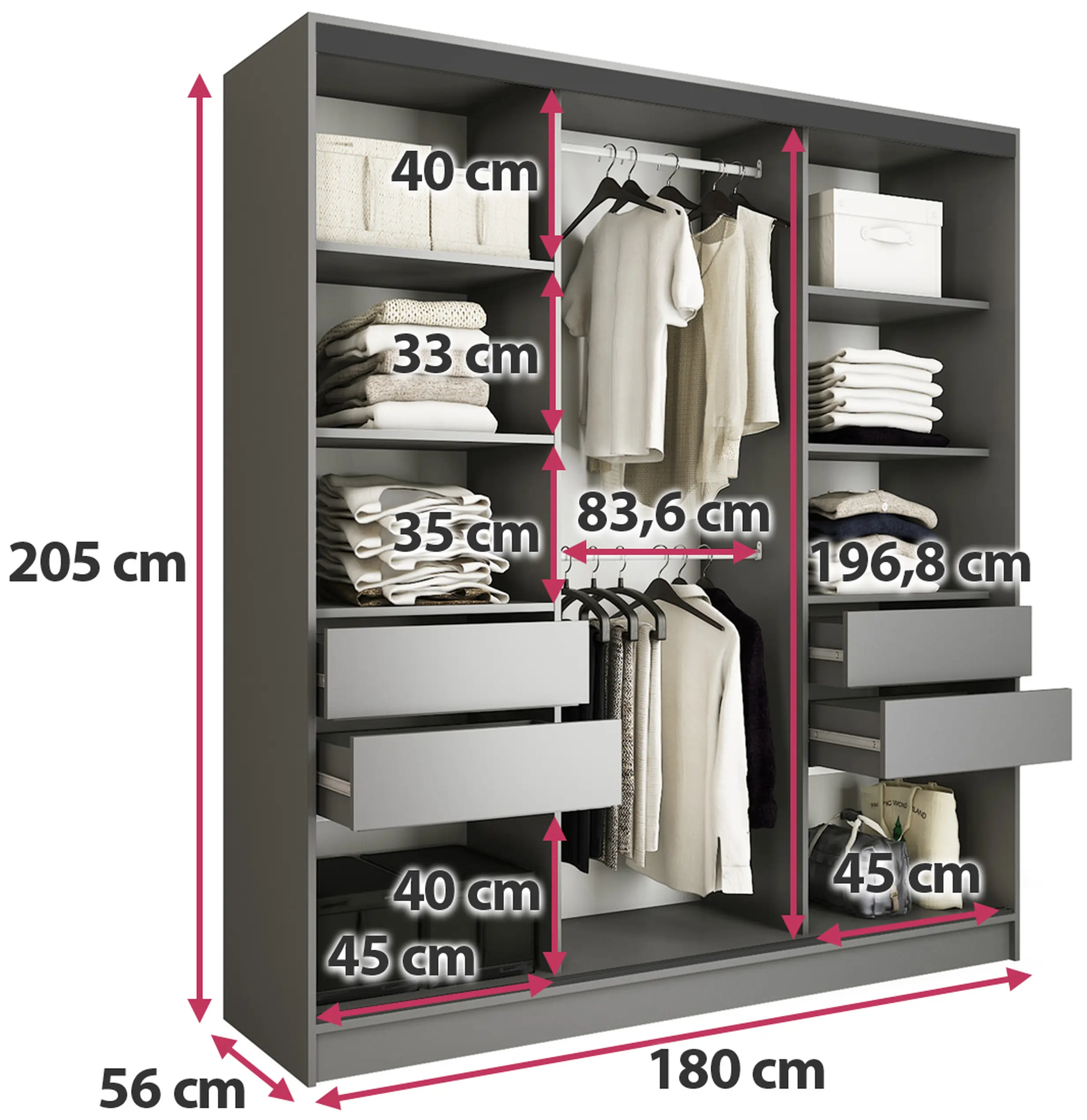Wybierając szafę przesuwną, stawiasz na nowoczesność i praktyczność. Szafa przesuwna LOFT o szerokości 180 cm z lustrem to perfekcyjne rozwiązanie dla każdego wnętrza, łączące w sobie elegancję i funkcjonalność. Przyjrzyjmy się bliżej jego wyjątkowym cechom.