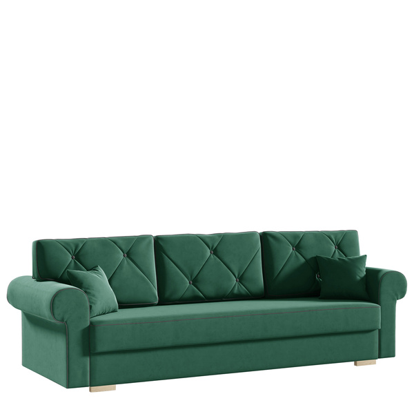 Pomimo nowoczesnego charakteru, rozkładana sofa do salonu ma w sobie nutę klasyki. To dzięki czterem drewnianym nóżkom, które nie tylko dodają jej stabilności, ale też podkreślają jej elegancki design nadając kanapie ciepła i przytulności.