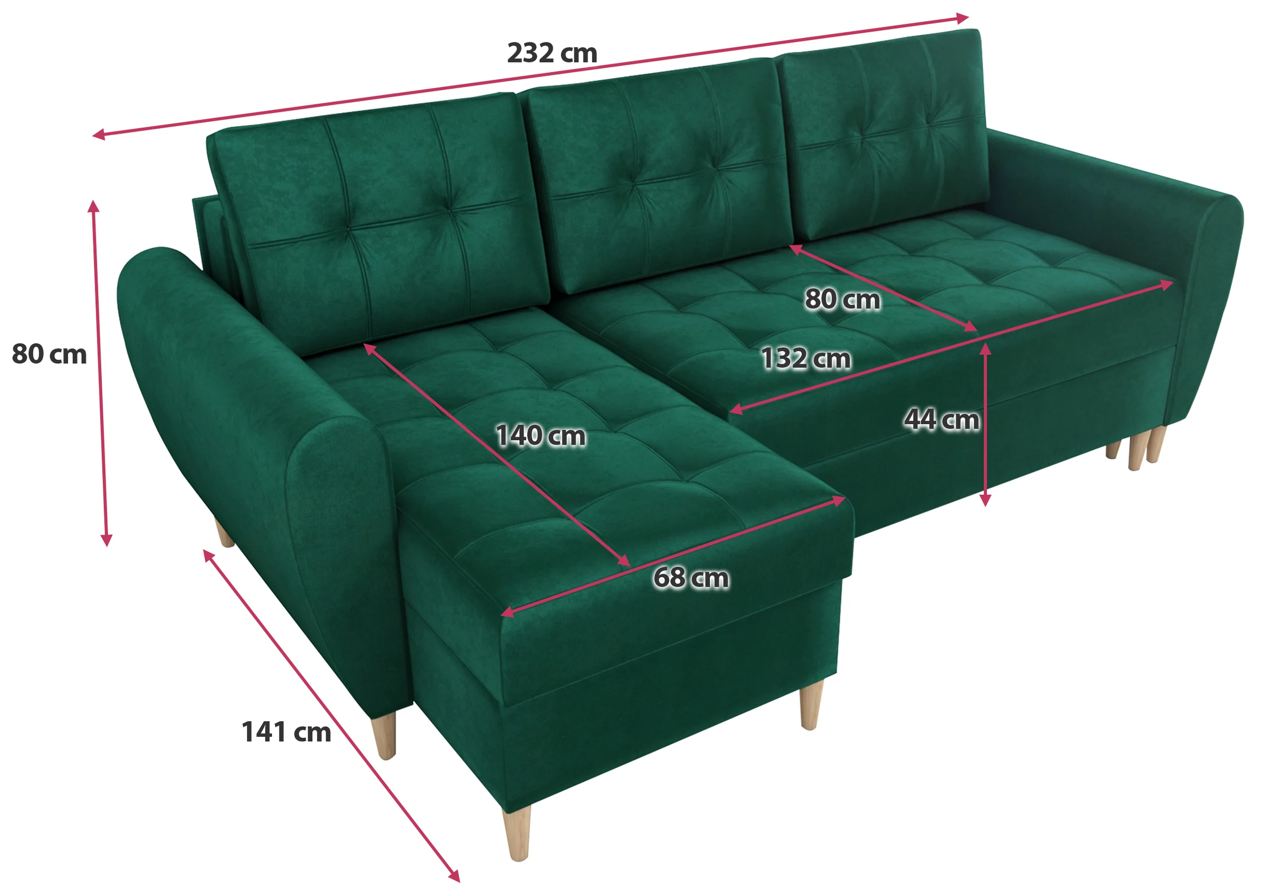 Narożnik HENRY to doskonały wybór dla tych, którzy cenią nowoczesny styl połączony z funkcjonalnością. Z funkcją spania o wymiarach 138x200 cm, idealnie sprawdzi się zarówno w codziennym użytkowaniu, jak i przy okazji wizyt gości. Dzięki prostej formie i eleganckiej stylistyce narożnik doskonale wkomponuje się w każde wnętrze, nadając mu nowoczesny, a zarazem przytulny charakter.