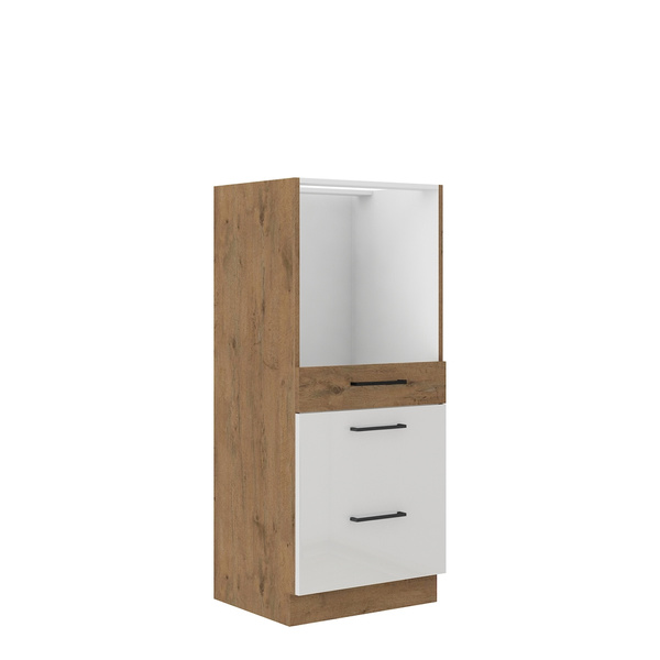 - Za dolnymi drzwiami znajduje się półka, natomiast za drzwiami z przeszkleniem - półka wykonana z płyty laminowanej oraz dwie szklane u góry.