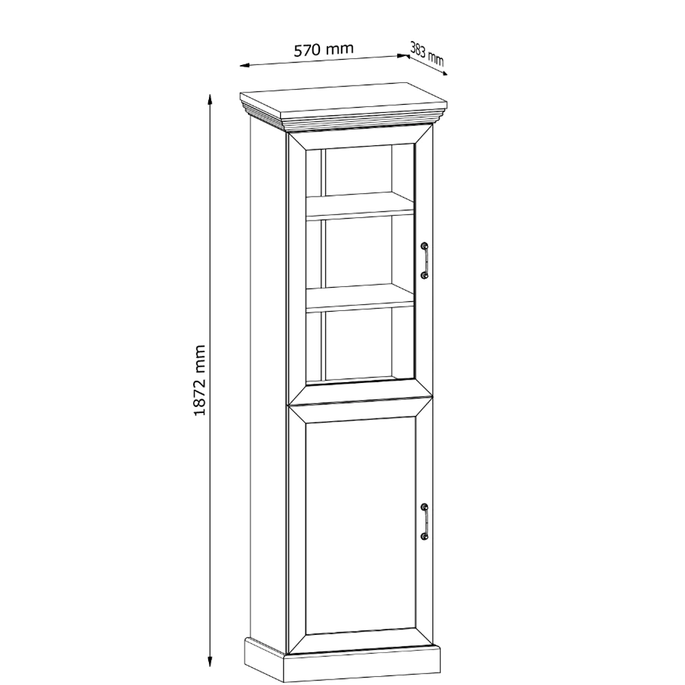 Witryna ROZANO została wyposażona we dwie półki znajdujące się za przeszklonymi drzwiami u góry, na których możesz umieścić swoje dekory oraz rozmaite pamiątki pozwalające nadać pomieszczeniu wyjątkowych akcentów stylistycznych. Dodatkowo u dołu swoje miejsce znalazły drzwi, za którymi znajdziesz dwa poziomy na rozmaite akcesoria.
