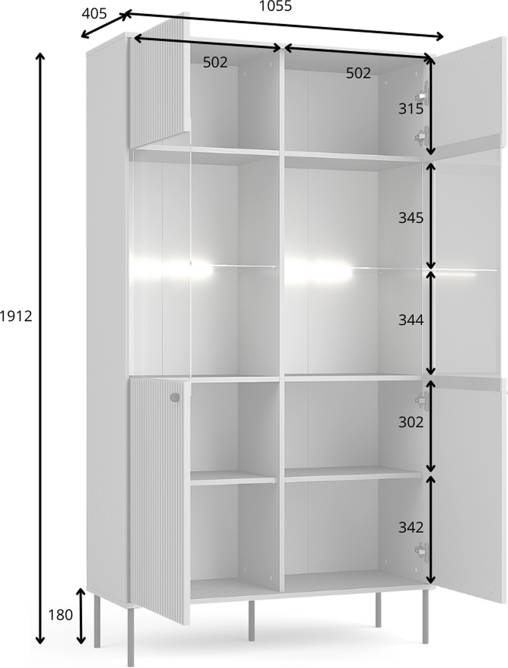 Witryna przeszklona IRYS 105 cm to połączenie funkcjonalności i ponadczasowego stylu. Jej modny, szary kolor wprowadza do wnętrza spokój i harmonię, a ryflowane fronty z płyty MDF dodają całości subtelnej elegancji. Dzięki przeszklonym półkom i solidnej konstrukcji, mebel doskonale sprawdzi się w salonie, jadalni czy gabinecie, eksponując dekoracje i jednocześnie zapewniając miejsce na praktyczne przechowywanie.