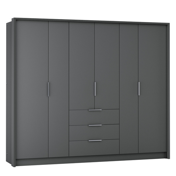 Szafa przepięknie się prezentuje, wszystko dopasowane, duże pojemne półki, jak i szuflady, miejsca na ubrania wiszące sporo, jestem bardzo zadowolony. Do zestawu zamówiłem również komodę, tam też sporo miejsca i wszystko idealnie spasowane. Polecam