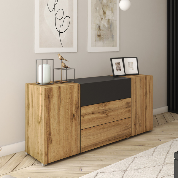 - Korpus oraz front wykonano z płyty laminowanej. Płyta laminowana charakteryzuje się odpornością na drobne zarysowania.